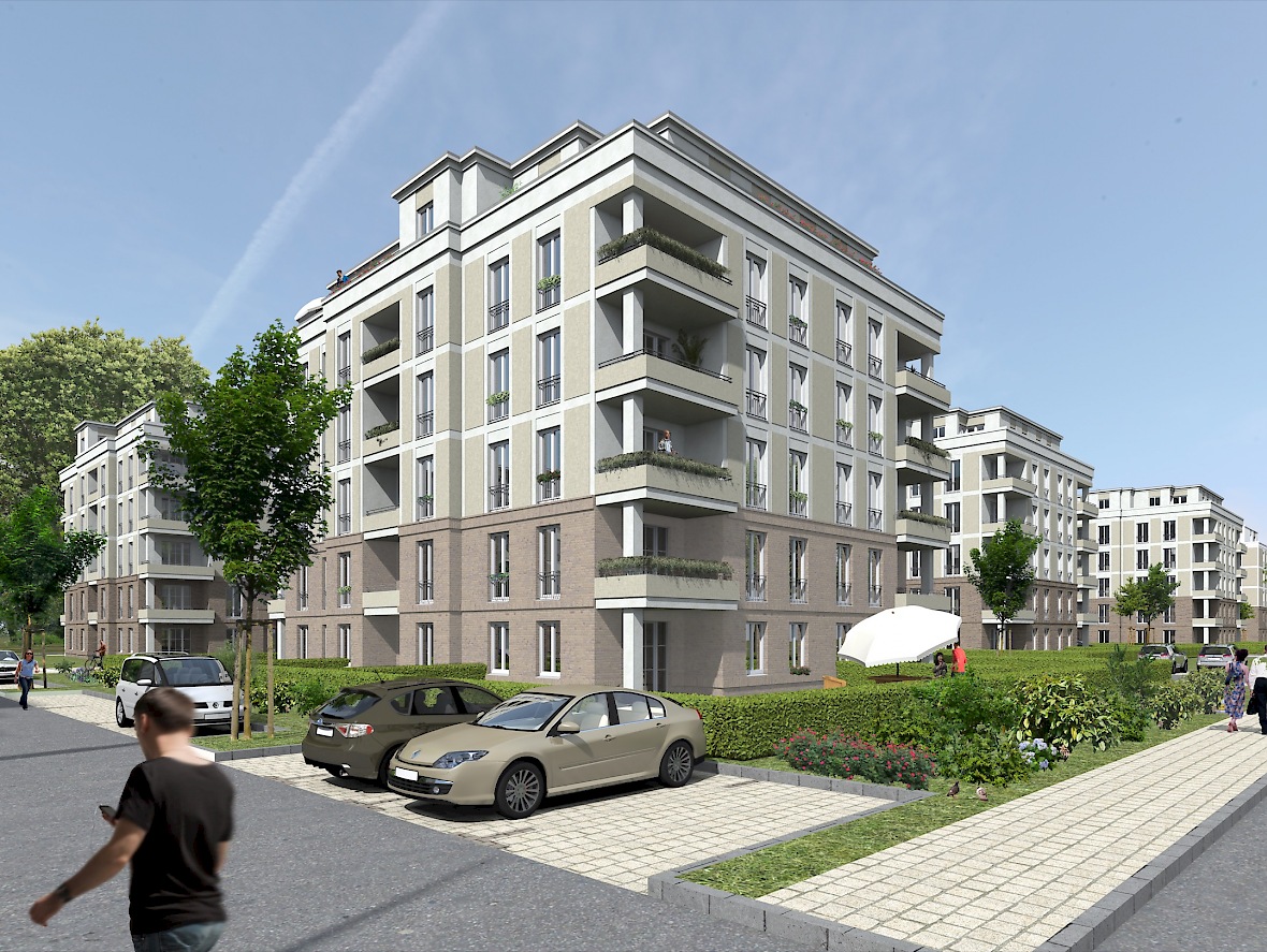 Errichtung von 11 Wohngebäuden mit insgesamt 256 Wohneinheiten und einer gemeinschaftlich genutzten Tiefgarage mit insgesamt 298 Stellplätzen in der Heinrich-Mann-Allee 95 in Potsdam. (A, B-G, H-K)