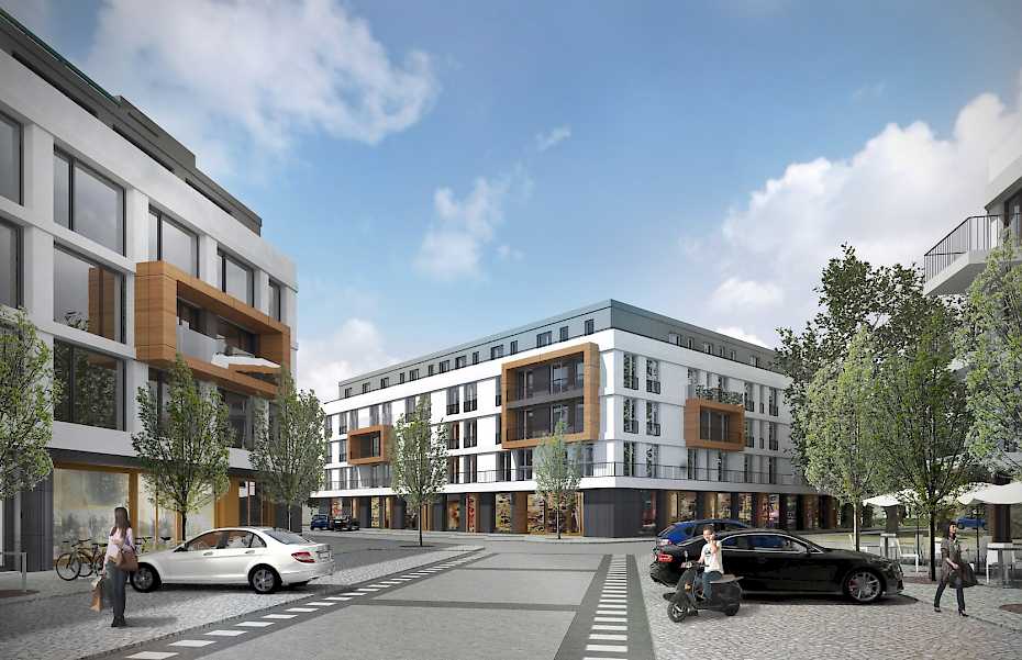 Das Projekt Campus vollendet die Entwicklung des historischen Studioareals am Filmpark Babelsberg. In zwei grösseren Solitären entstehen im Erdgeschoss je Gewerbeflächen zur Versorgung des Wohngebietes wie Handelsflächen und Restaurants.