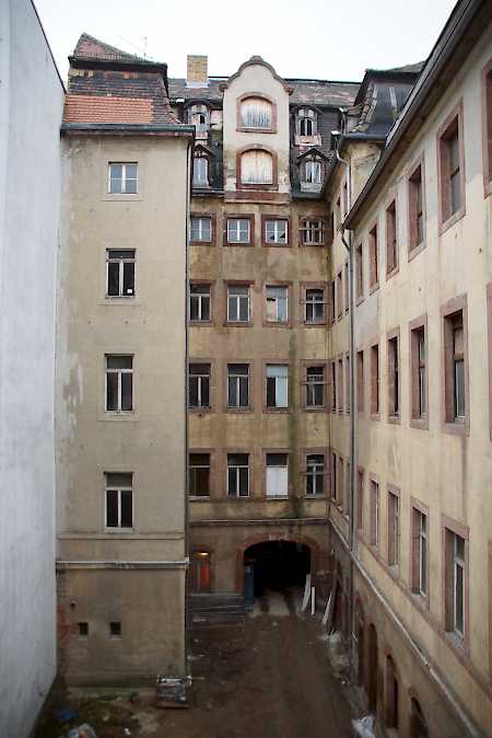 Neben dem Romanushaus liegt das letzte, bis heute unsanierte, barocke Kaufmannshaus in Leipzig. Das liegt sowohl an der anspruchsvollen Bausubstanz als auch an der komplizierten städtebauliche Struktur mit zwei - tief in den Block reichenden - Innenhöfen.