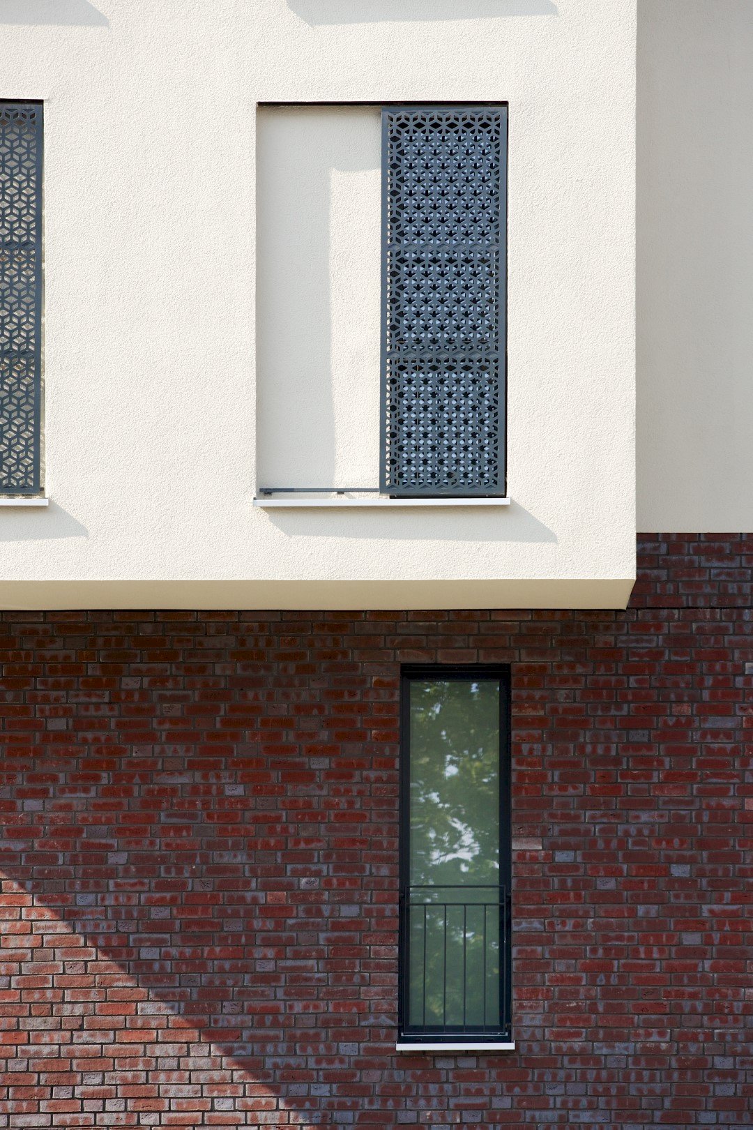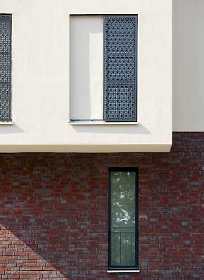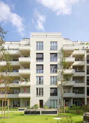 Die Fassaden sind durch Erker, Loggien und Balkone plastisch gegliedert, bei genauer Betrachtung ist jede Wohnung für sich ablesbar. Die Balkone sind so angelegt, dass sie im Wechselspiel aus Vor- und Rücksprung jedem Bewohner einen sonnigen und gleichzeitig geschützten Platz bieten.