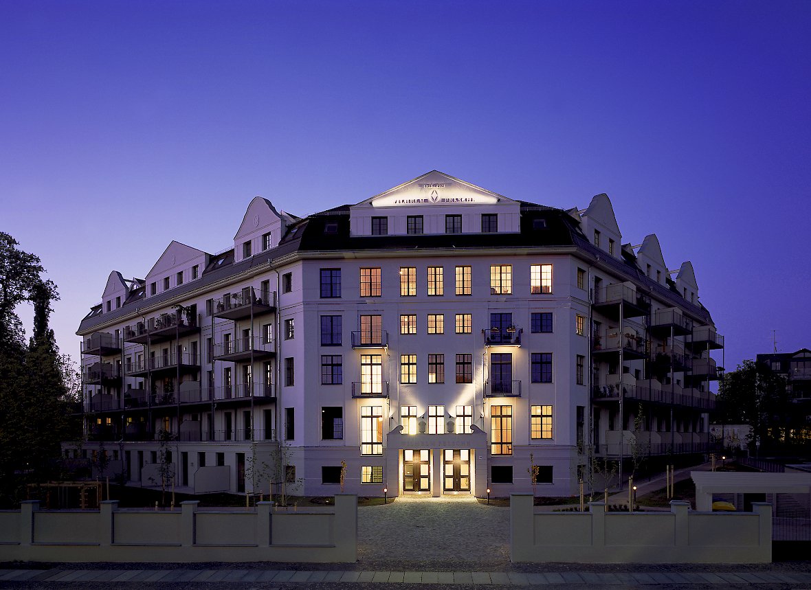 Um 1915 erhielt das ab 1860 schrittweise gewachsene Gebäudeensemble einer einheitliche repräsentative Fassade im Reformstil. Nach dem Krieg stellte VEB Goldeck weiterhin zur Schokolade her, später dienten die Hallen einem Zulieferbetrieb für die russische Panzerproduktion. Für die JUS-AG haben wir den konstruktiv wenig flexiblen Komplex zu einer extrem beliebten Loft-Wohnanlage weiterentwickelt: