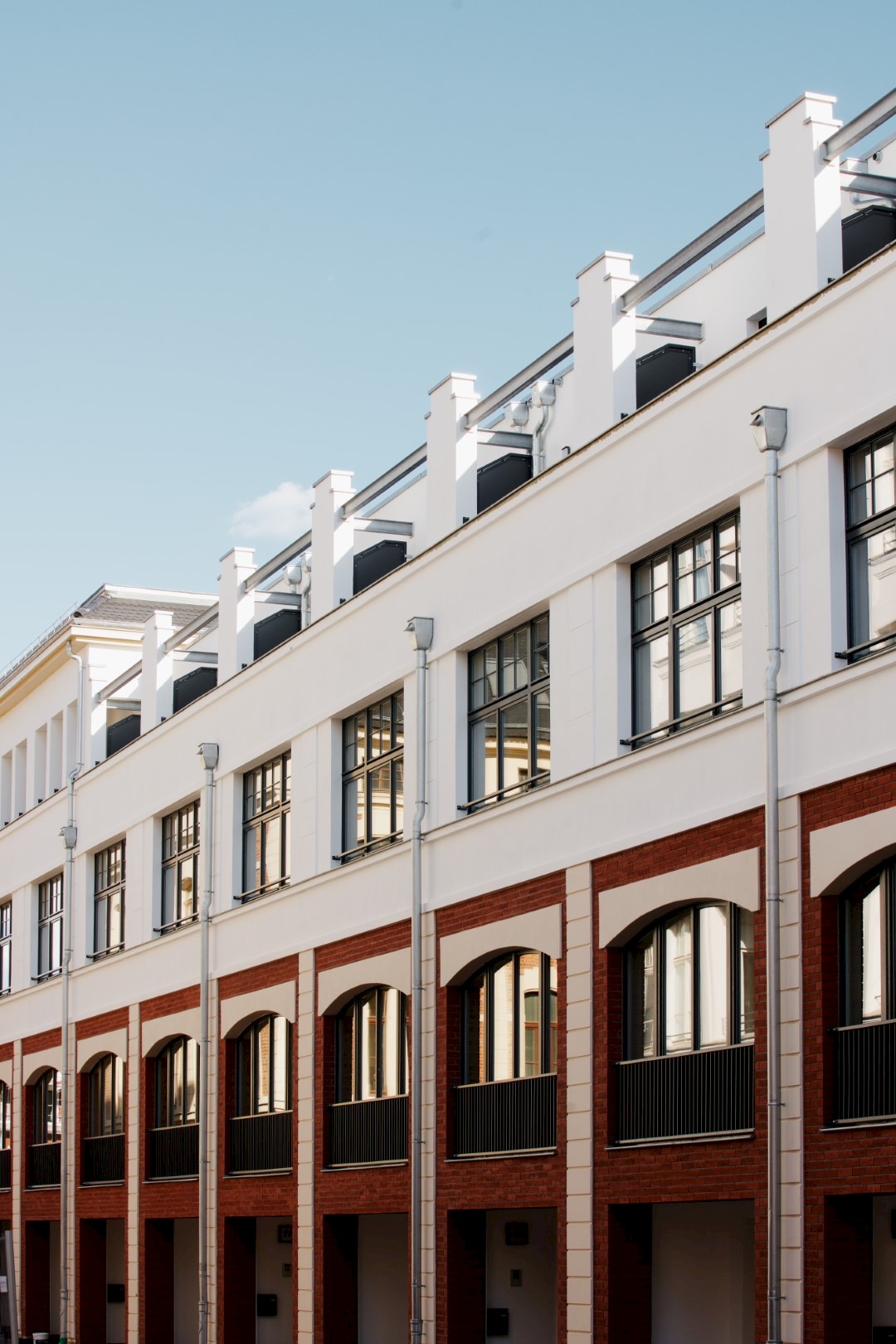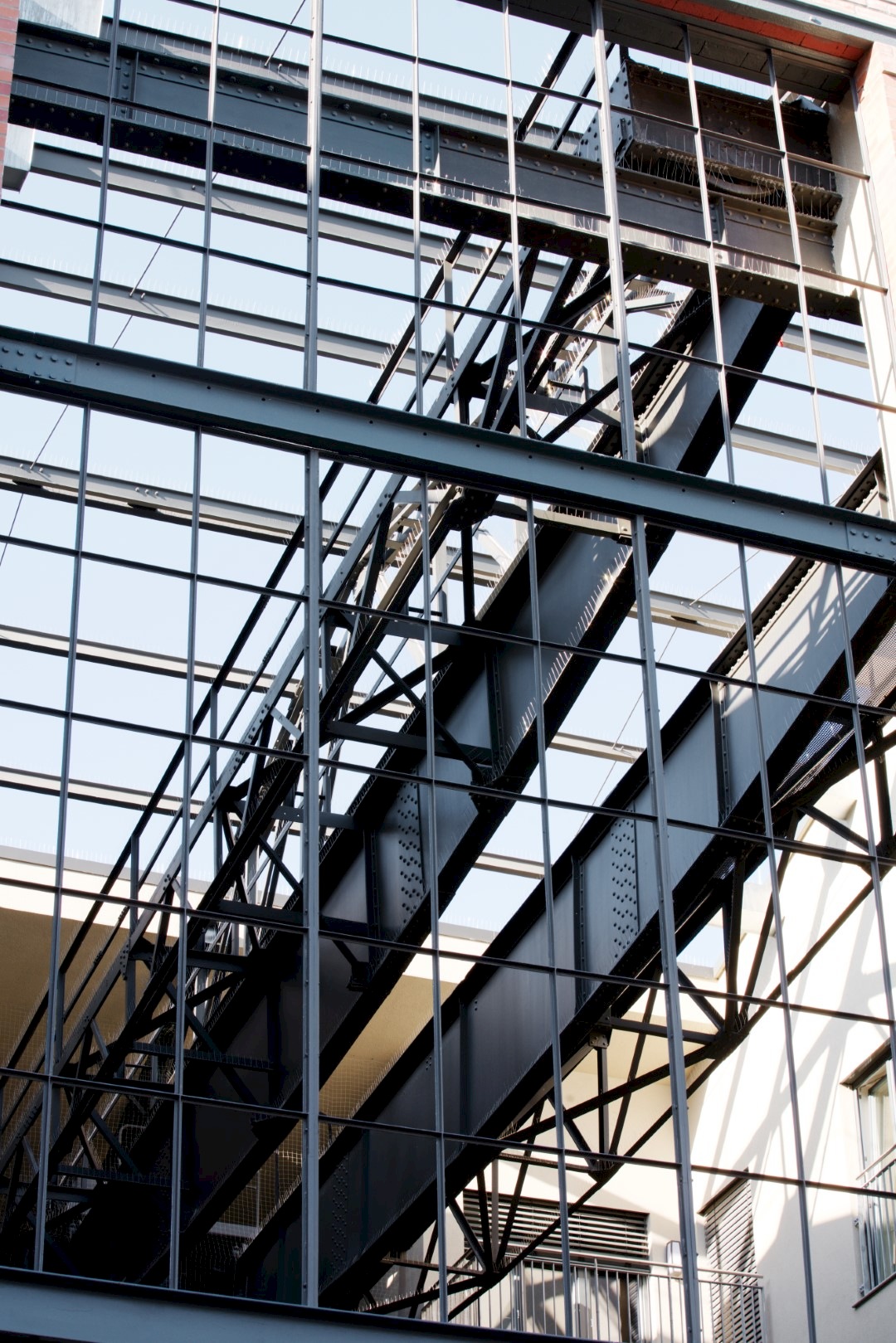 Darüber hinaus muss aber in den riesigen Werkhallen, die das Areal gestalterisch prägen, ein ganz neuer Gebäudetypus entwickelt werden: In einem „Haus-im-Haus“- Konzept entwickeln wir innerhalb der hundert Meter langen Hallenstruktur eine neue Typologie von Terrassenhäusern, die in der denkmalgeschützten Gebäudehülle moderne Familienwohnungen ermöglicht.