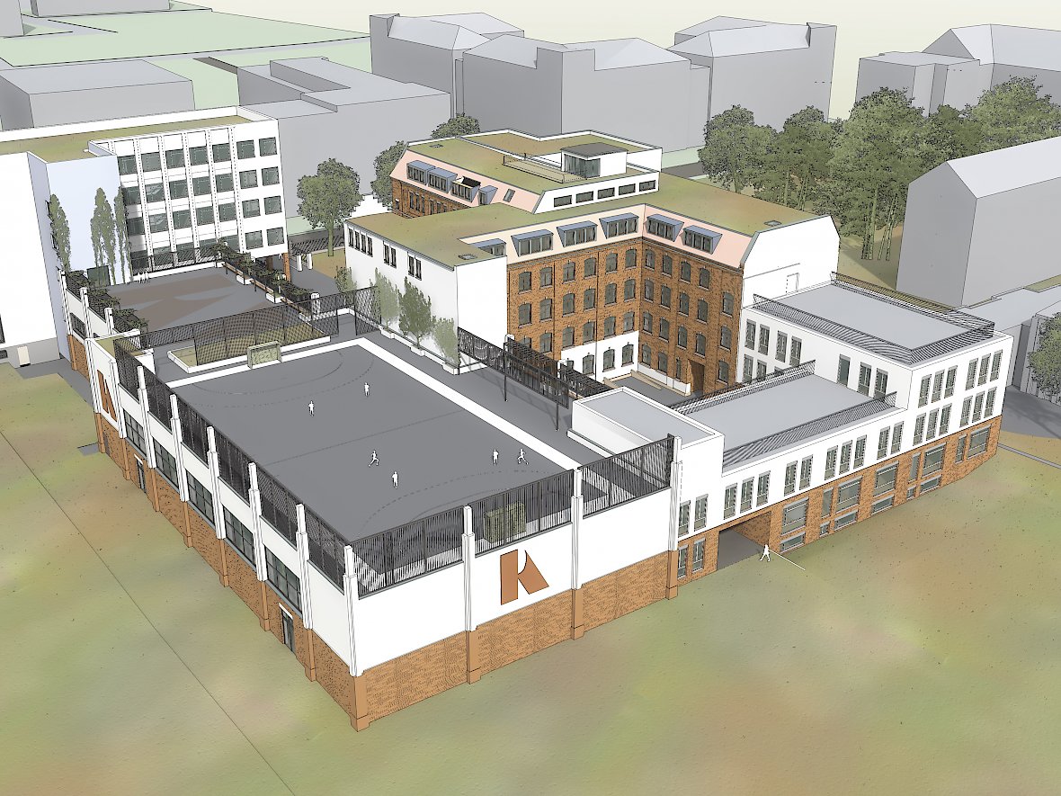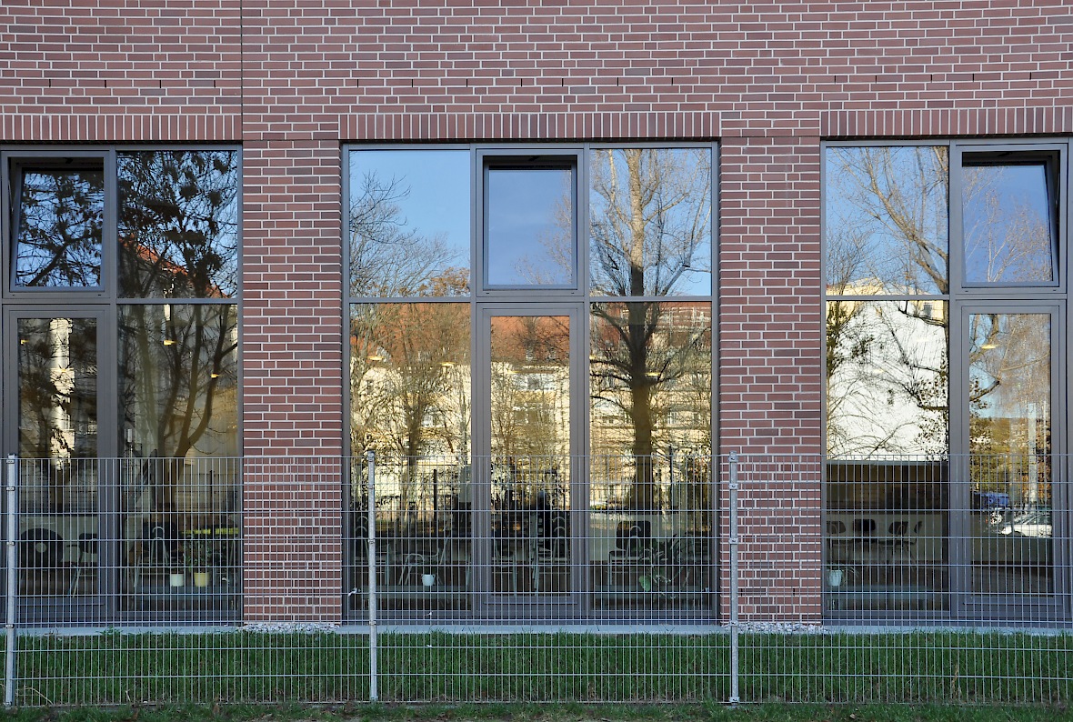 Umnutzung eines Graphischen Industriegebäudes mit Neubauten zu einem Bildungscampus mit Kita, Grundschule, Gymnasium und Oberschule sowie einer Dreifeldhalle zwischen Salomonstraße und Inselstraße in Leipzig Zentrum.