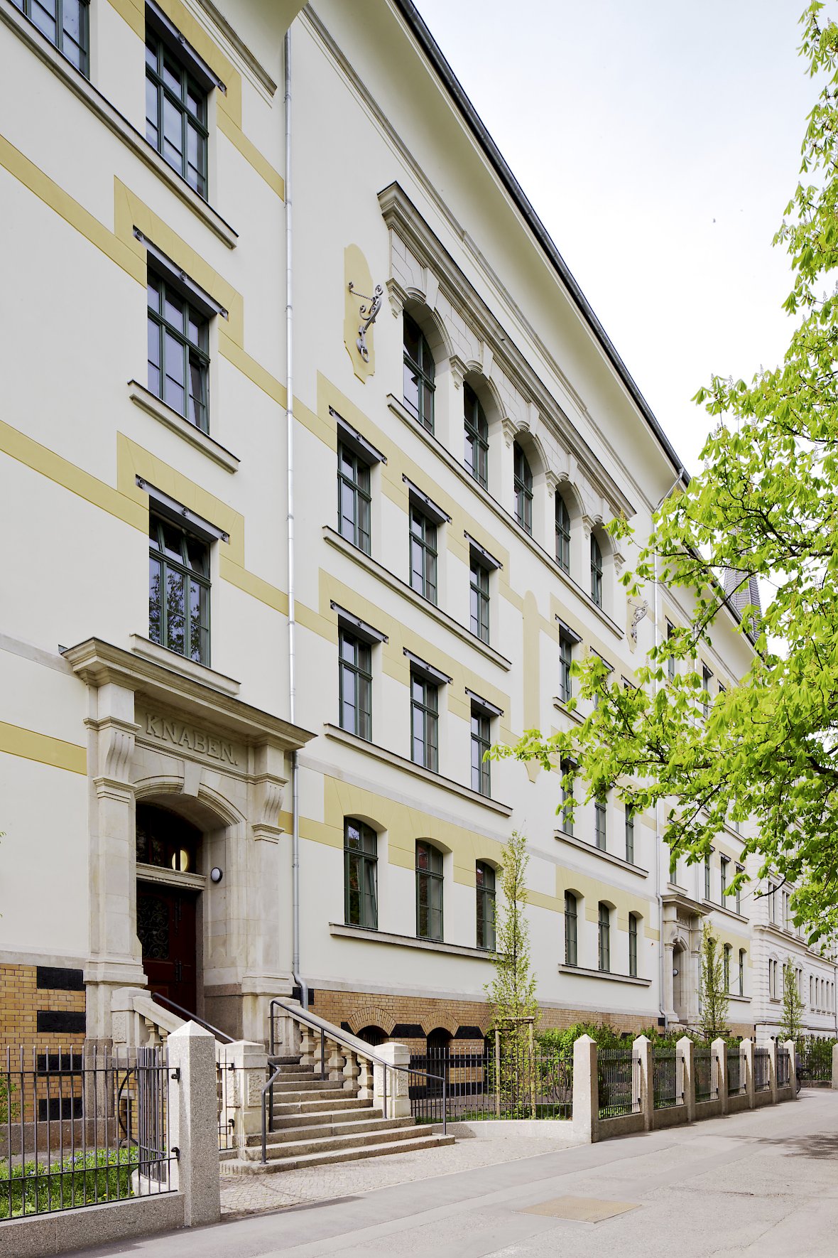 Das denkmalgeschützte Ensemble umspannt baugeschichtlich den Zeitraum vom Spätklassizismus über den Historismus bis hin zu ersten Jugendstilanklängen. Die Sanierung stellte so nicht nur pädagogisch-konzeptioneller Sicht sondern auch in denkmalpflegerischer Hinsicht eine spannende Herausforderung dar.