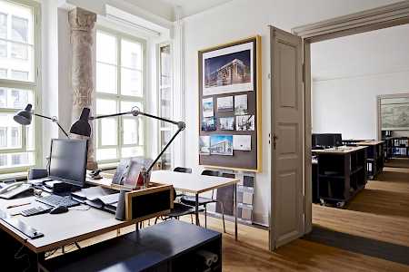 Behutsame Sanierung eines historischen Kaufmannshauses zur Nutzung als Büro mit Gewerbe- und Gastronomieeinheiten im Erdgeschoss in der Katharinenstraße 11 im Zentrum von Leipzig.