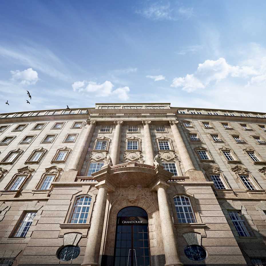 Das denkmalgeschützte Palais der Kaiserlichen Oberpostdirektion, im Westend prominent an der Ludwig-Erhard-Anlage gelegen, wird erhalten, von späteren An- und Umbauten aus den 1990ern befreit und zu einem anspruchsvollen Appartementhaus mit 164 Wohneinheiten umgestaltet.