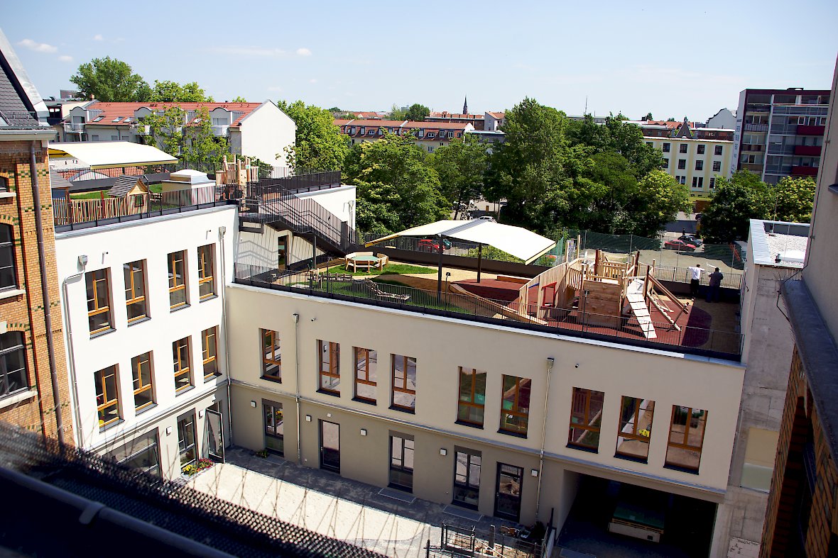Neubau einer Kindertagesstätte für 180 Kinder am Bildungscampus Graphisches Viertel in der Inselstraße in Leipzig Zentrum.