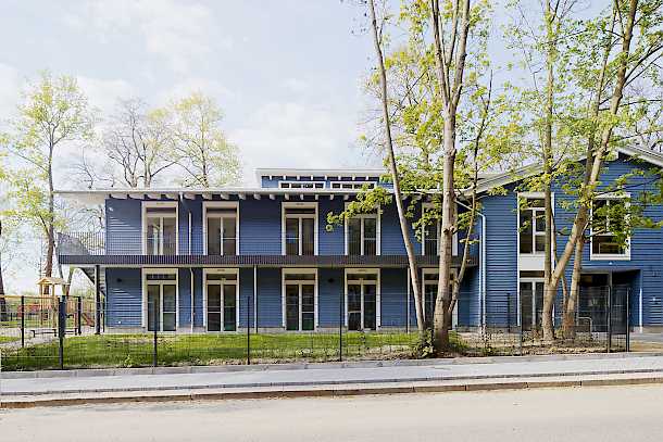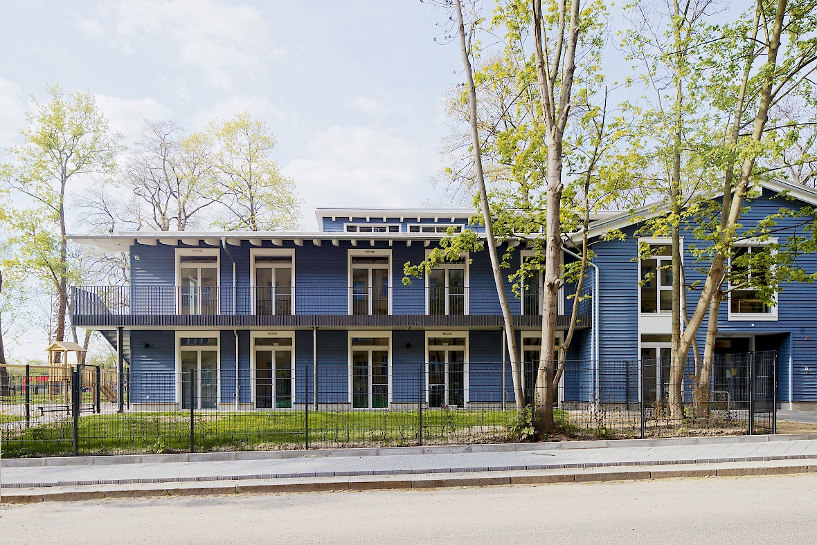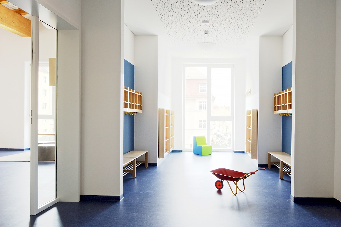 Innerhalb eines historisch gewachsenen Wohngebietes im Süden von Leipzigs ist ein Campus von insgesamt 4 Kindertageseinrichtungen mit unterschiedlichen Profilen für fast 600 Kinder entstanden.