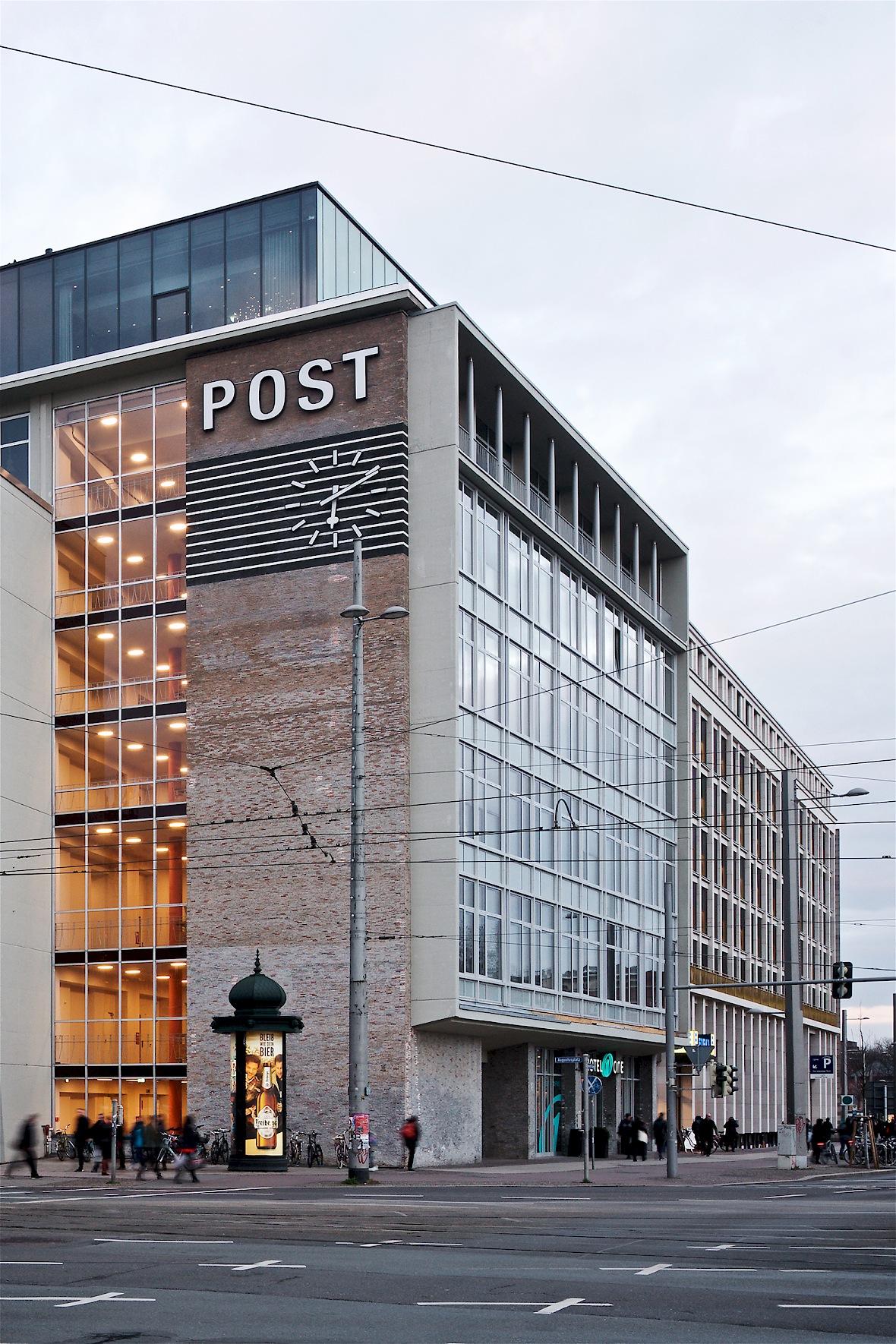 Umnutzung, Sanierung der Hauptpost am Augustusplatz mit ergänzenden Neubauten zu einem multifunktionalen Innovations-, Wohn- und Gewerbestandort im Stadtinneren.