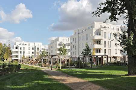 Auf dem historischen Gelände des Babelsberger Filmparks entwickelt die KWD nach einem Masterplan unseres Büros um einen kleinen Park herum ein Wohnensemble in der Tradition der freistehenden Potsdamer Stadtvillen.