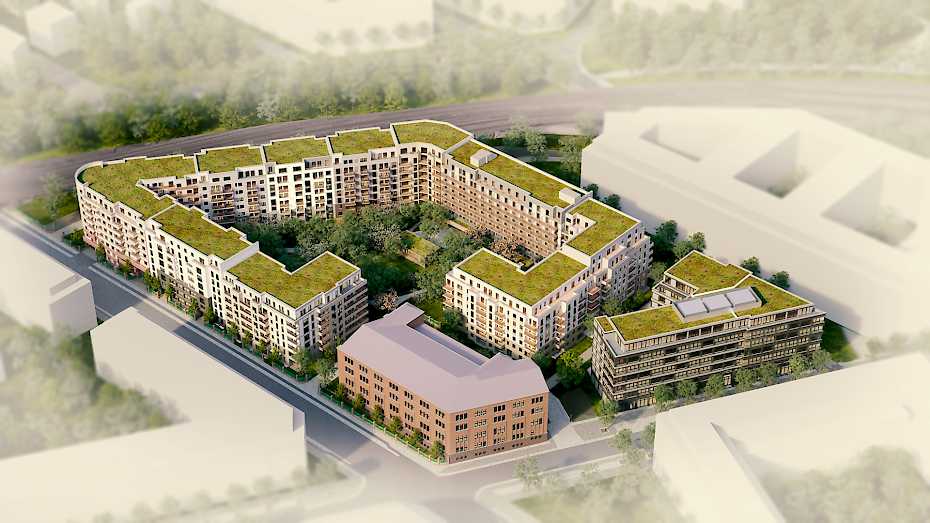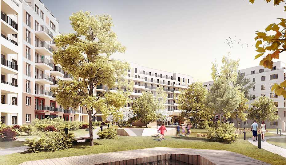 Entwicklung von 655 Mietwohnungen mit Gemeinschaftsflächen und Kindergarten